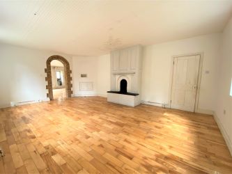 A stunning, bright room with dual aspect, solid maple flooring, raised fireplace, vaulted ceiling and tower seating area. An archway with exposed brick finish leads to:-